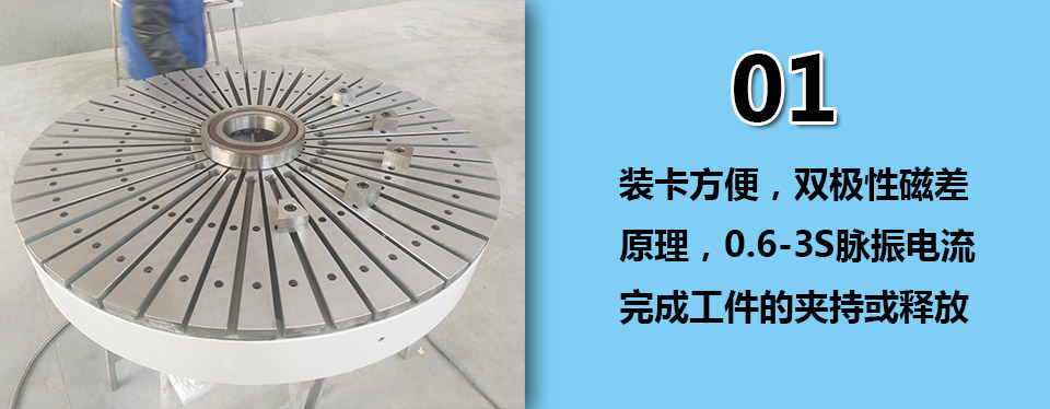 2、操作迅速充退磁循環(huán)快,充磁后工作中,工作磁力不受系統(tǒng)斷電等電源故障影響,退磁后臺(tái)面剩磁干凈,可實(shí)現(xiàn)快速應(yīng)力釋放。