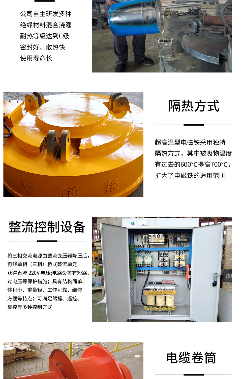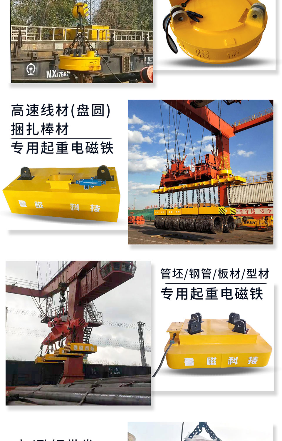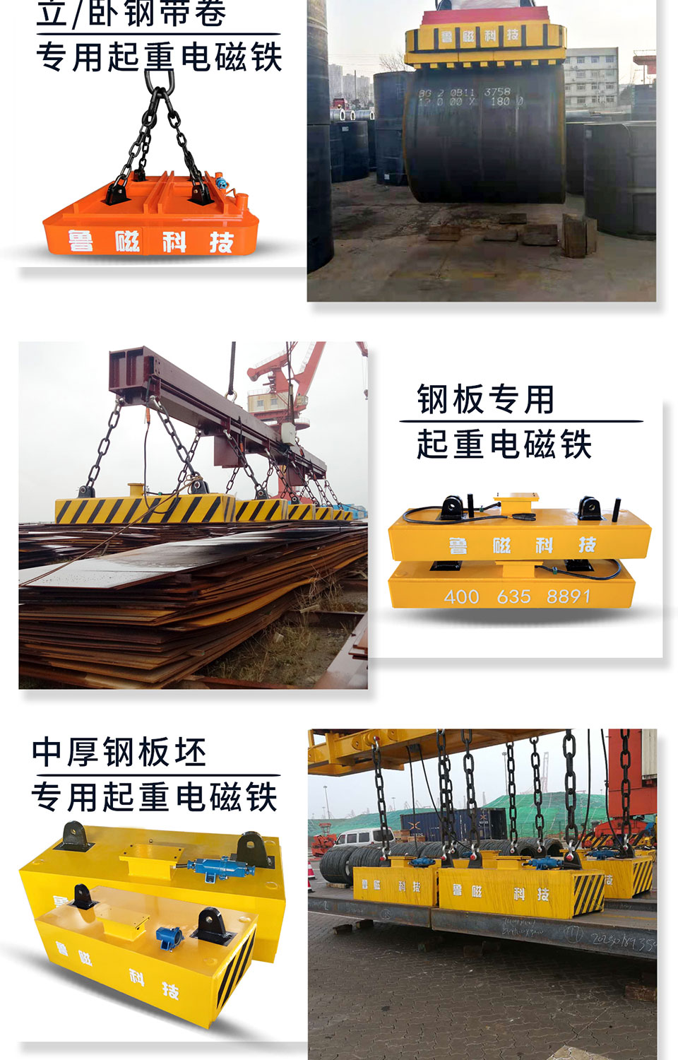 針對鋼鐵廠的大容量煉鋼爐,頻繁裝卸各種輕雜廢料的需要,強磁型起重電磁鐵的吸力高出普通型約30%以上,特別適用于電爐煉鋼上料流程,已廣泛應用于國內各大鋼鐵公司,用戶反映良好。