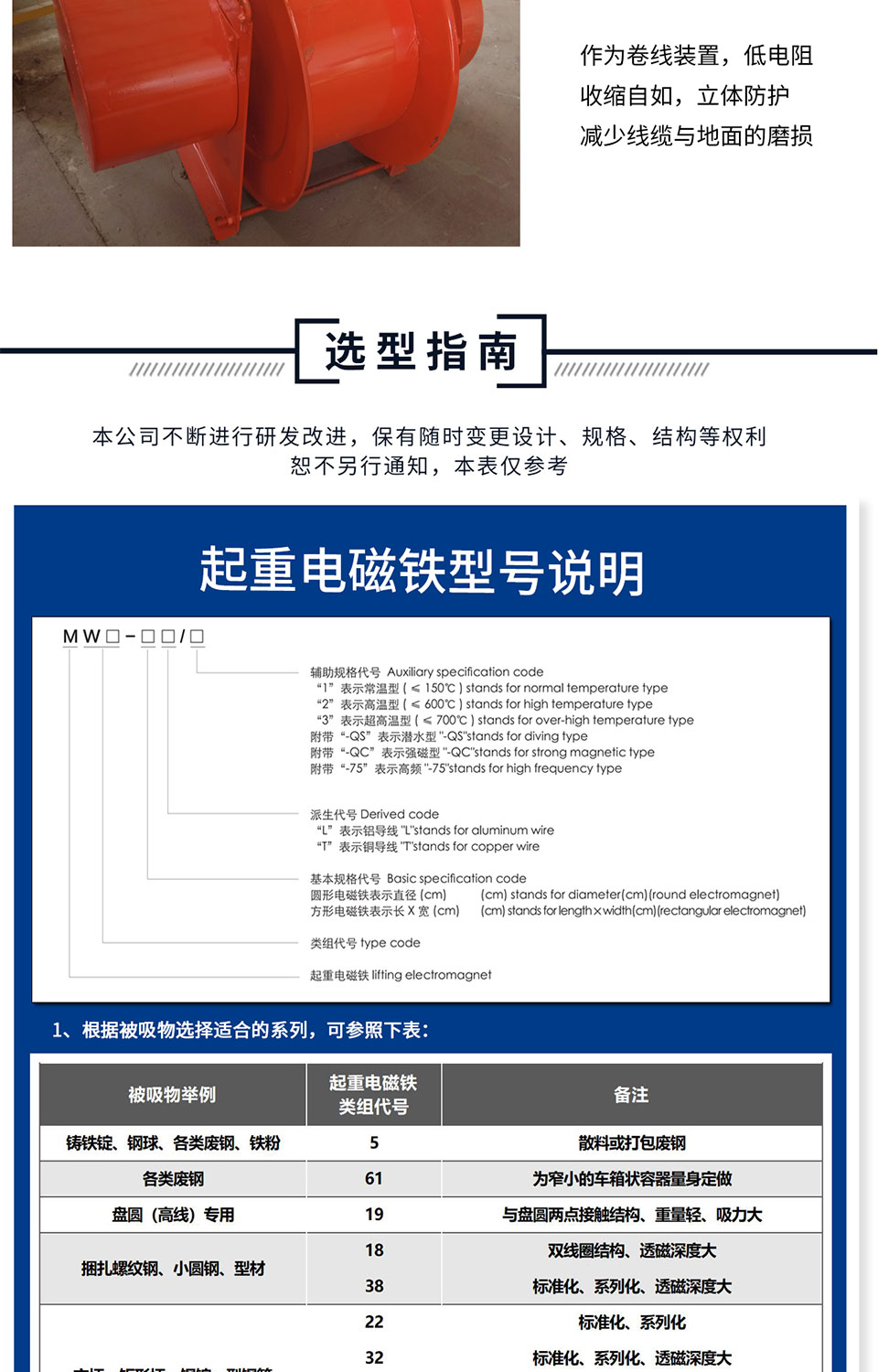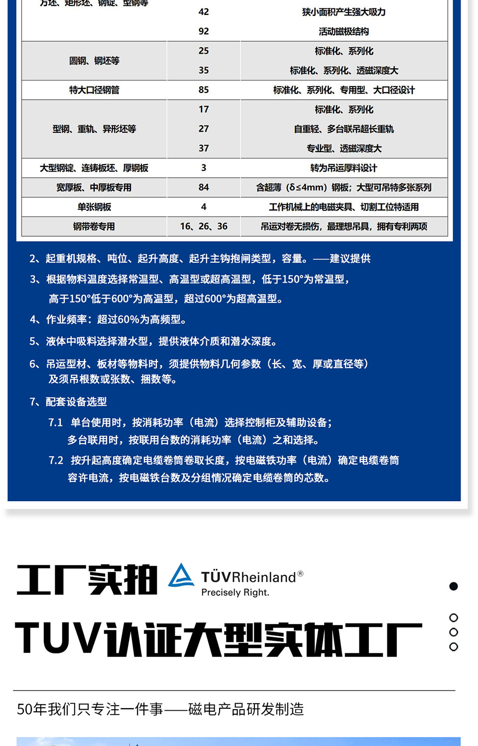 2、通電持續(xù)率超過60%時請選用高頻型起重電磁鐵。