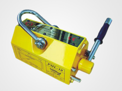 永磁起重器由釹鐵硼永久磁性材料組成強磁系統(tǒng),通過手柄的轉動,改變強磁系統(tǒng)磁力達到對工件的吸持和釋放。起重器上部有供提起物件的吊環(huán),下有一V形 槽供吸持相應的圓柱形物體所用。永磁起重器采用的強力永磁材料是:稀土永磁一釹鐵硼為磁源,具有不耗電、吸力強、剩磁低、操作輕便、壽命長、安全可靠等特點,廣泛用于機械工業(yè)、模具制造業(yè)、倉庫和交通運輸等部門搬運鋼板、鋼錠等導磁性物體。